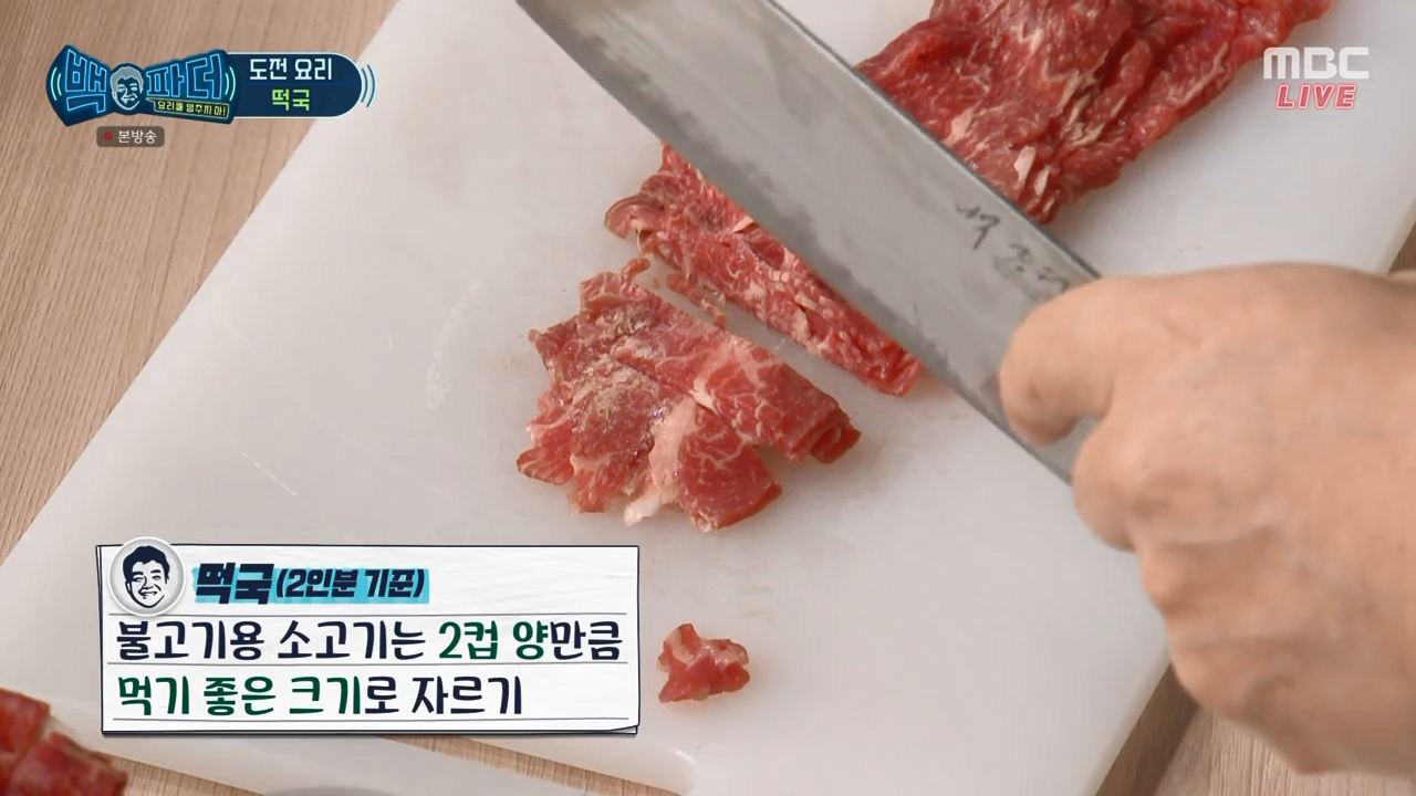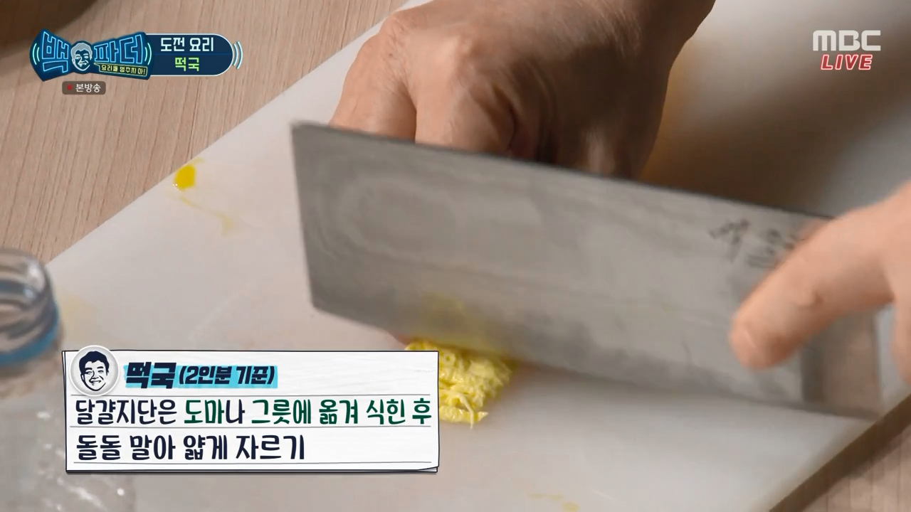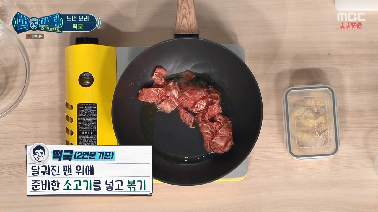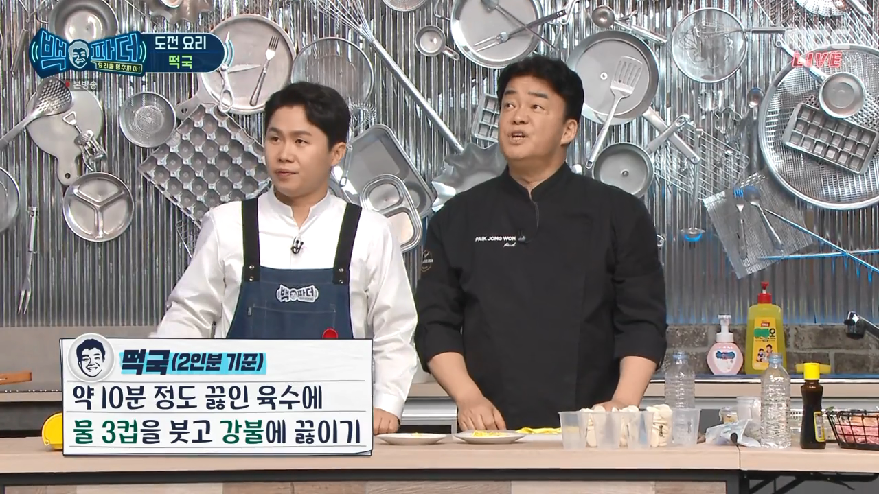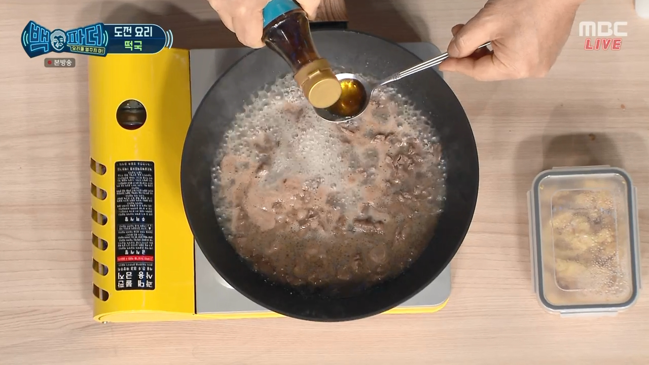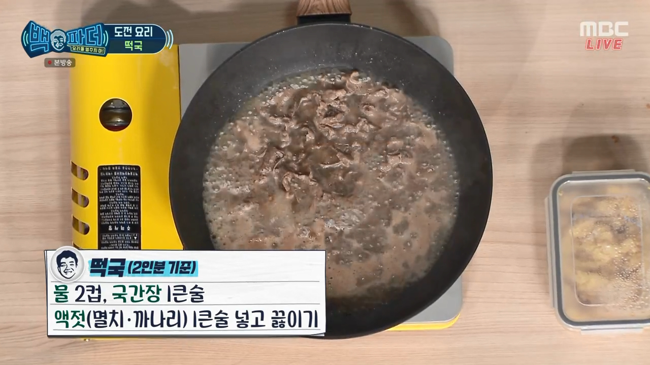 방송에서는 고기 국물 내는 시간 동안 지단 만들기 보여주는 동안 너무 졸아서 물을 좀 더 넣었는데 실제로 끓일 때는 10분 정도 끓인 후에 물 3컵을 붓고 강불로 끓이기만 하면 마무리된다고 합니다.